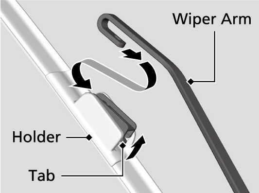 - Press up on and hold the tab, then slide the holder off the wiper arm.
