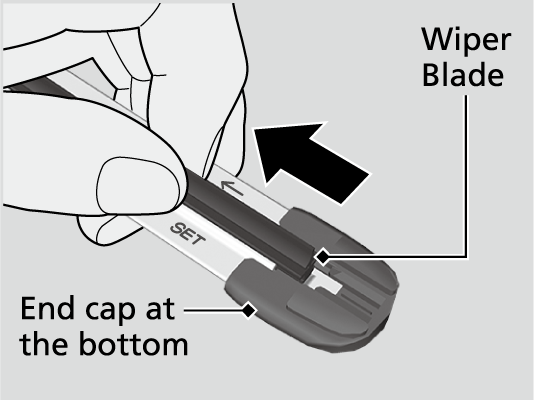 - Insert the flat side of the new wiper blade onto the bottom part of the holder. Insert the blade all the way.