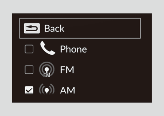 - Roll the left selector wheel to scroll between audio sources, then press the left selector wheel to check or uncheck them.