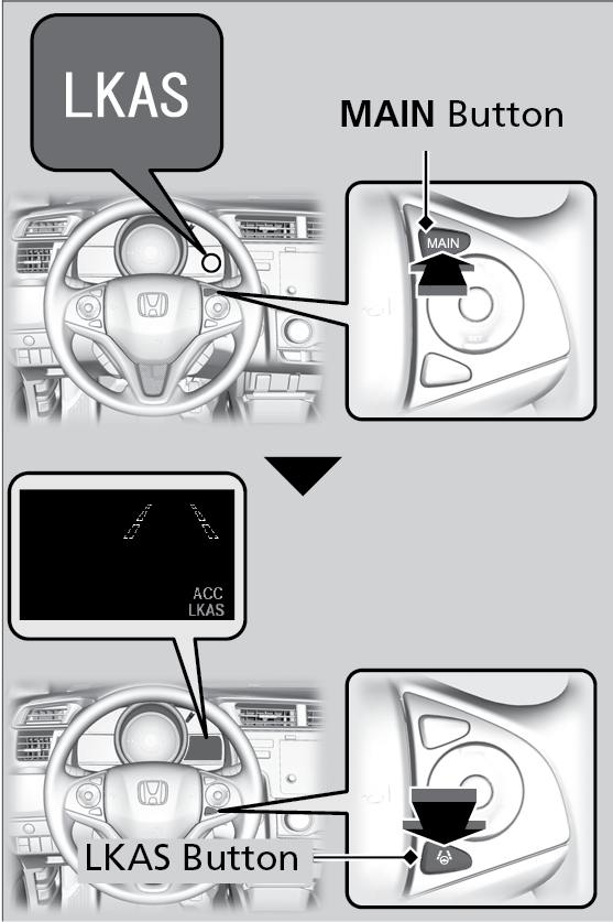 driver information interface. Dotted lane lines turn solid when the system activates.
