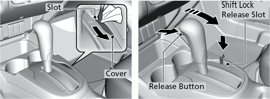 For Continuously Variable Transmission (CVT) models: Follow the procedure below if you cannot move the shift lever out of Park (P).