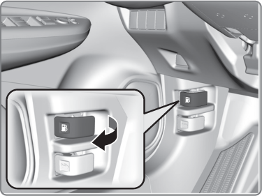 Turn the fuel fill cap slowly to open. Place the fuel fill cap in the holder.