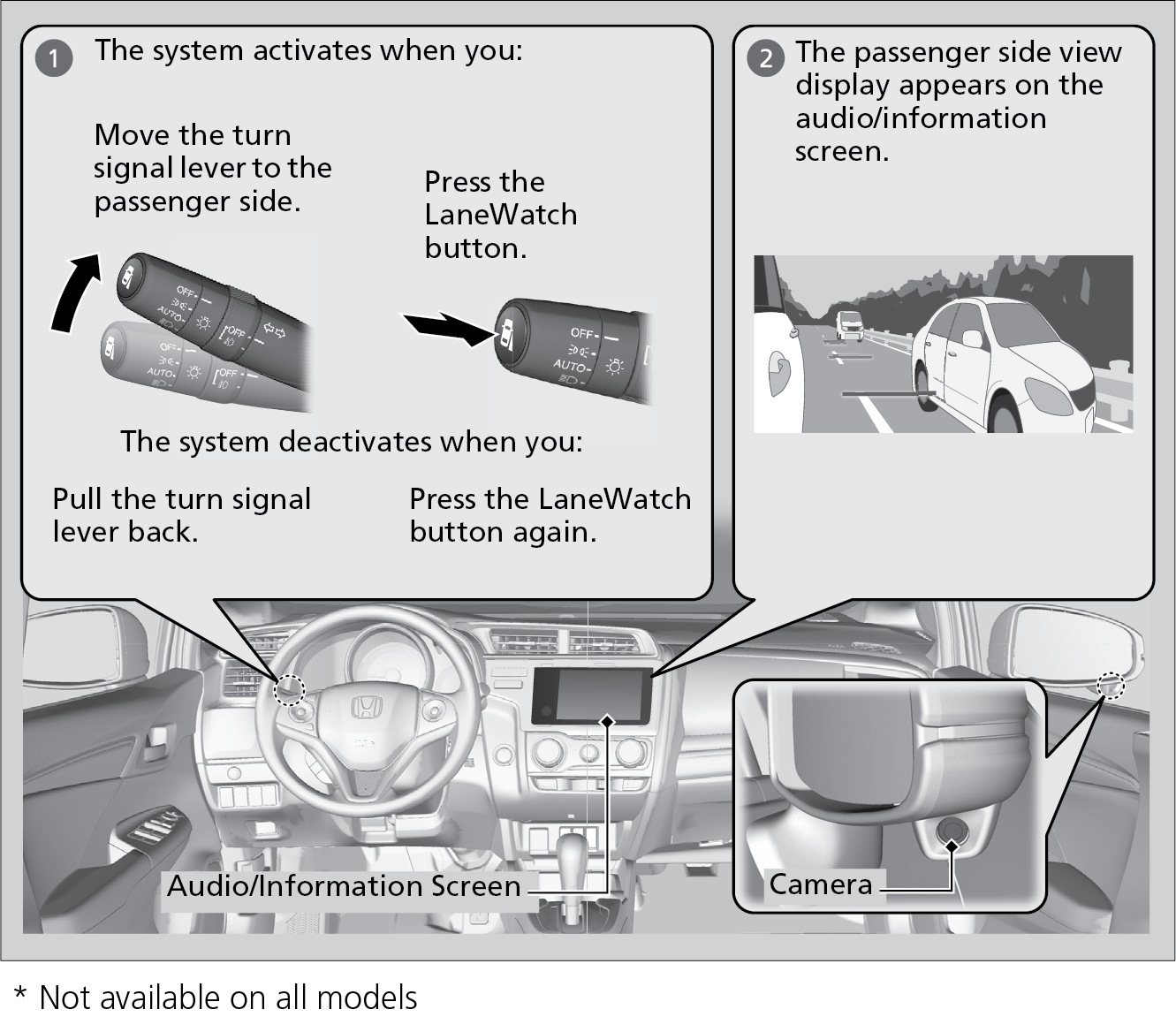 Allows you to check the passenger side rear areas displayed on the audio/information screen when the turn signal is activated to the passenger’s side.