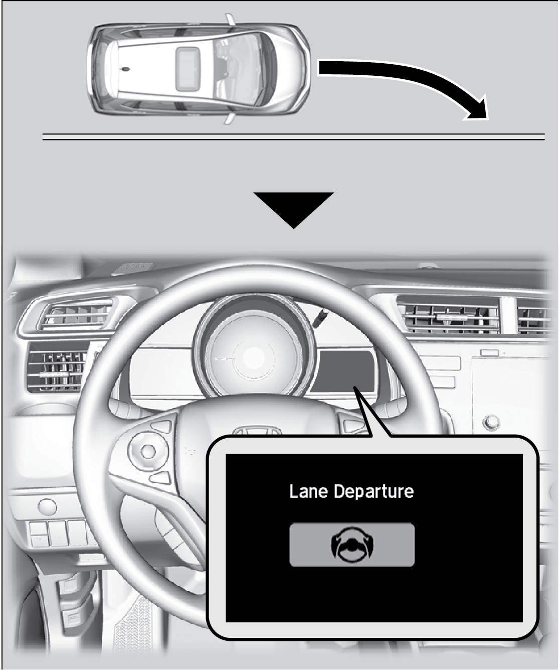 Alerts and helps to assist you if the system determines a possibility of your vehicle unintentionally crossing over detected lane markings and/or leaving the roadway altogether while driving between
