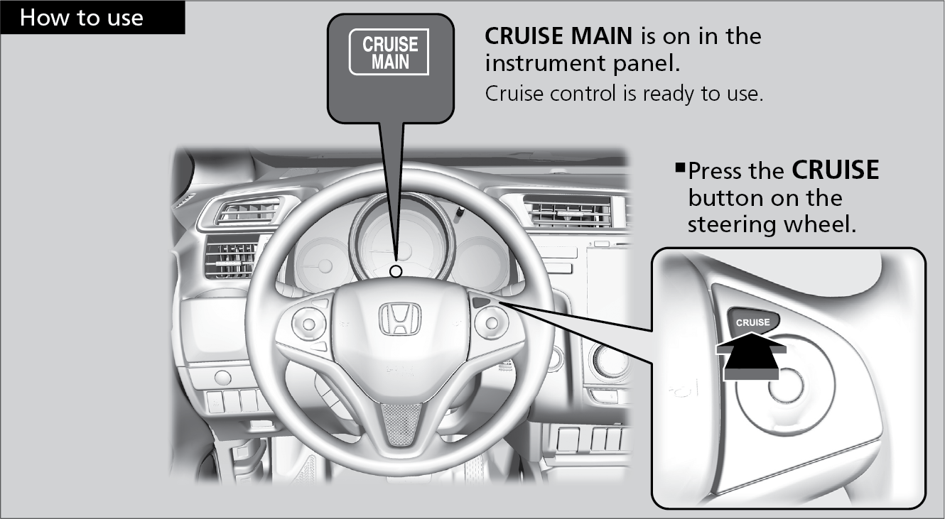 Maintain a constant vehicle speed without having to keep your foot on the accelerator pedal. Use cruise control on freeways or open roads where you can travel at a constant speed with little acceleration or deceleration.