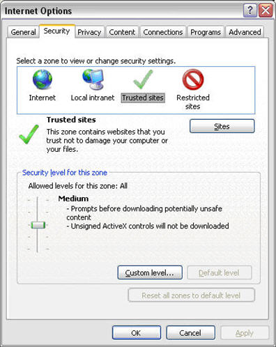 4. Click on the Trusted Sites icon so that the words ‘Trusted Sites’ are highlighted.